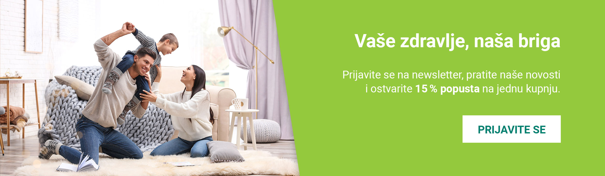 Vaše zdravlje, naša briga. Ostavite e-mail adresu i redovito ćete dobivati zdravstvene savjete, te najbolje ponude i popuste direktno u inbox.