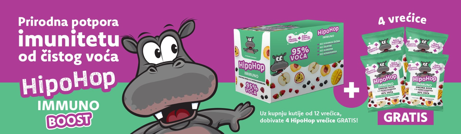 Uz kupnju kutije od 12 vrećica, dobivate 4 HipoHop vrećice GRATIS! Akcija traje do isteka zaliha.